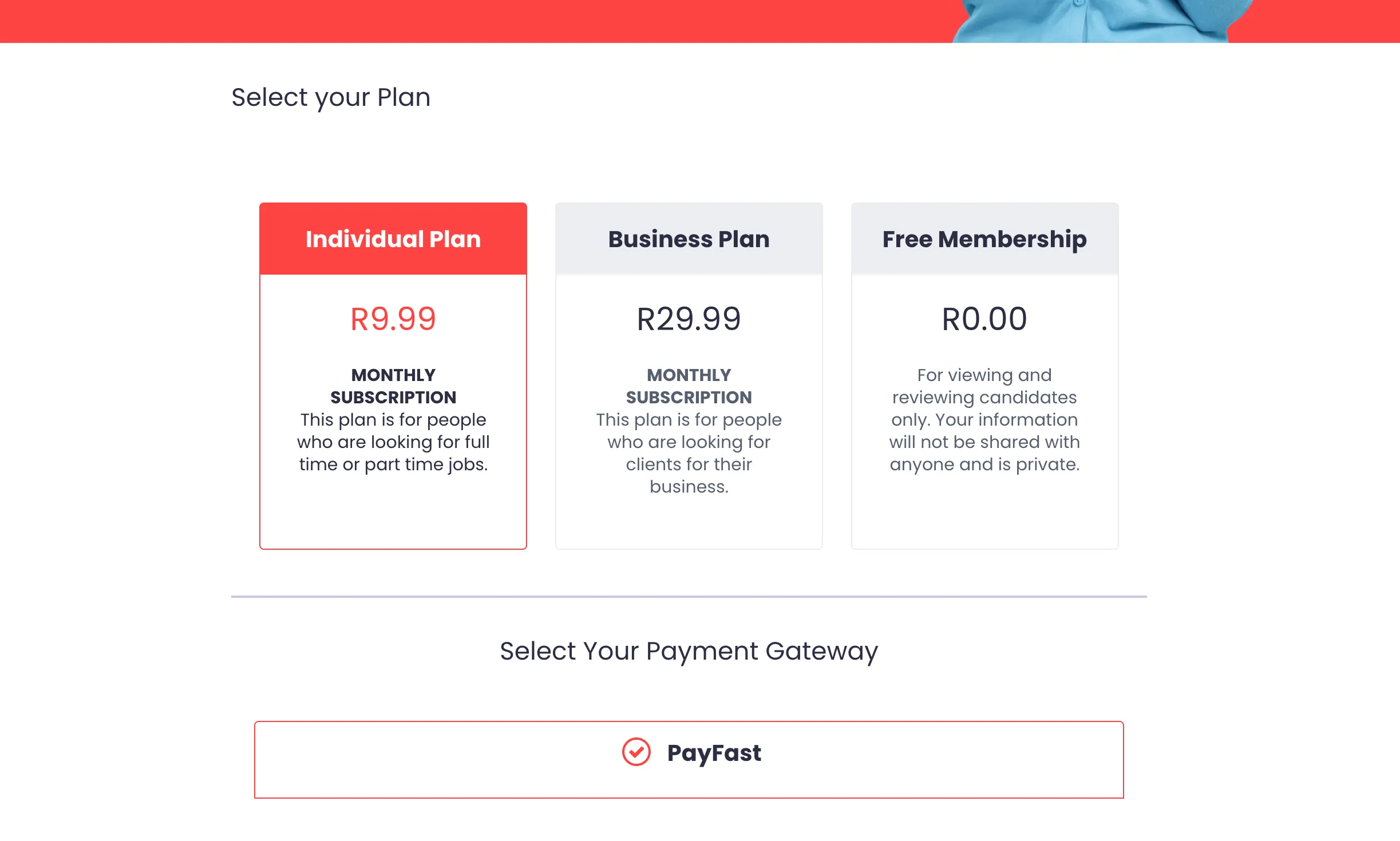Select your subscription plan and choose your payment option and then submit.